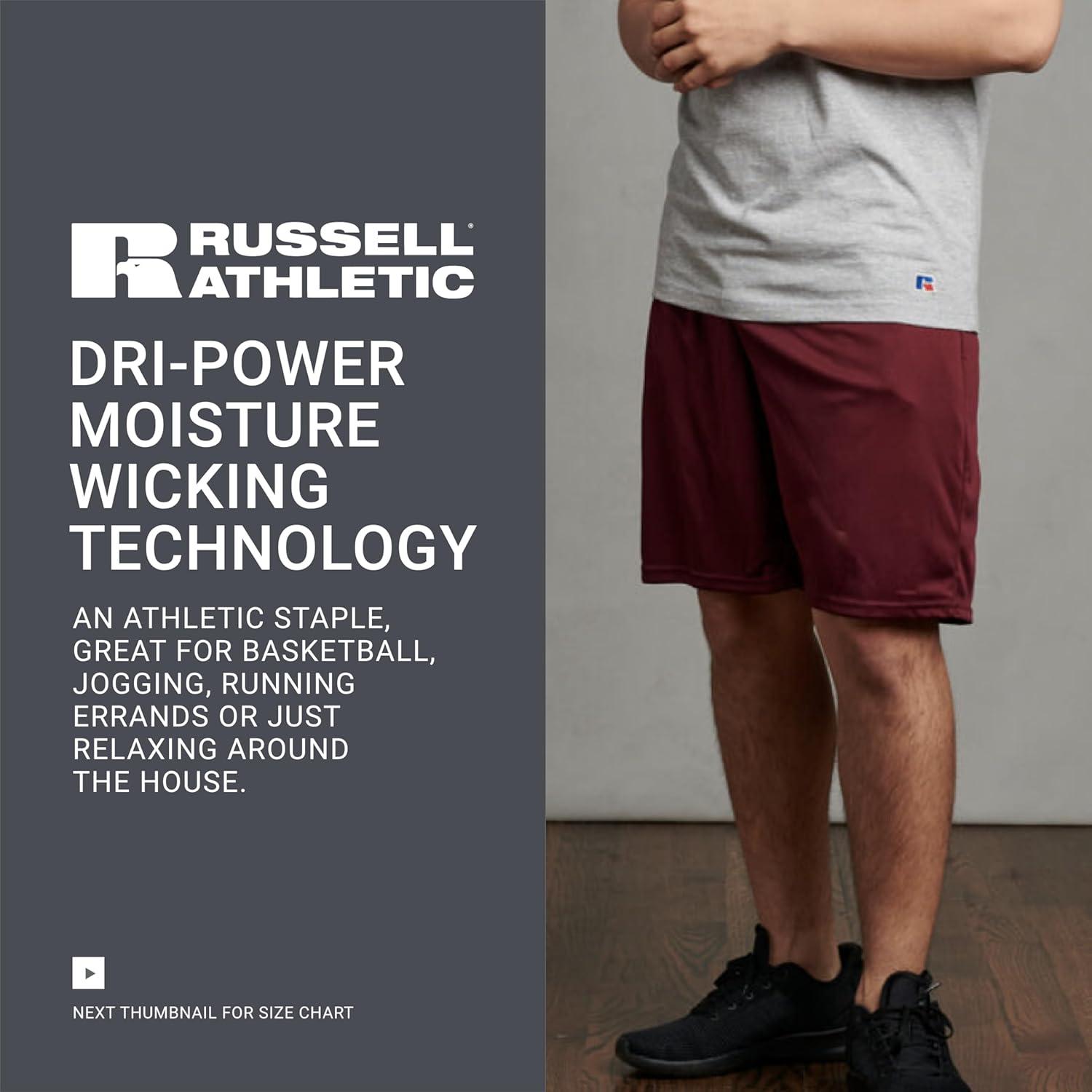 Russell Athletics Men’s Dri Power Essential Performance Shorts with Pocket – Workout and Gym Active Wear(Maroon)