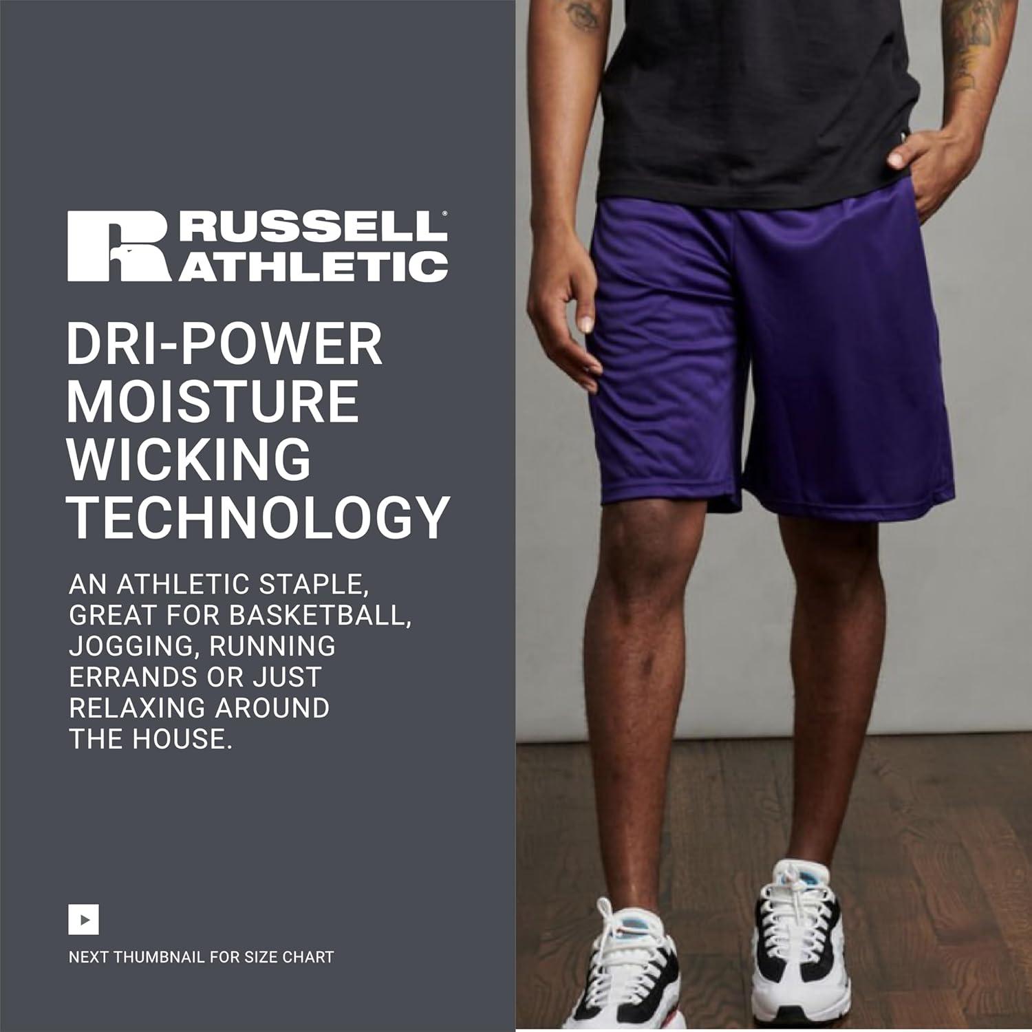 Russell Athletics Men’s Dri Power Essential Performance Shorts with Pocket – Workout and Gym Active Wear(Purple)