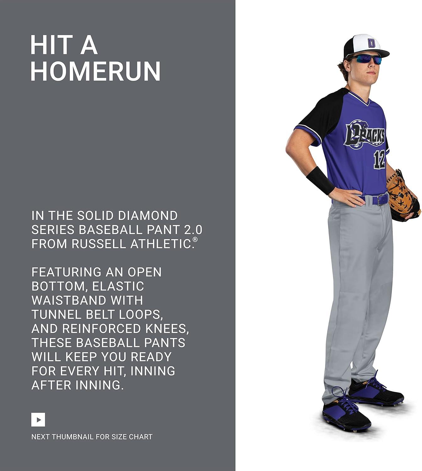 Russell Athletic Men’s Solid Diamond Series Baseball Pant 2.0: Tailored Excellence, Essential Pockets, Fastpitch Ready(Baseball Grey)