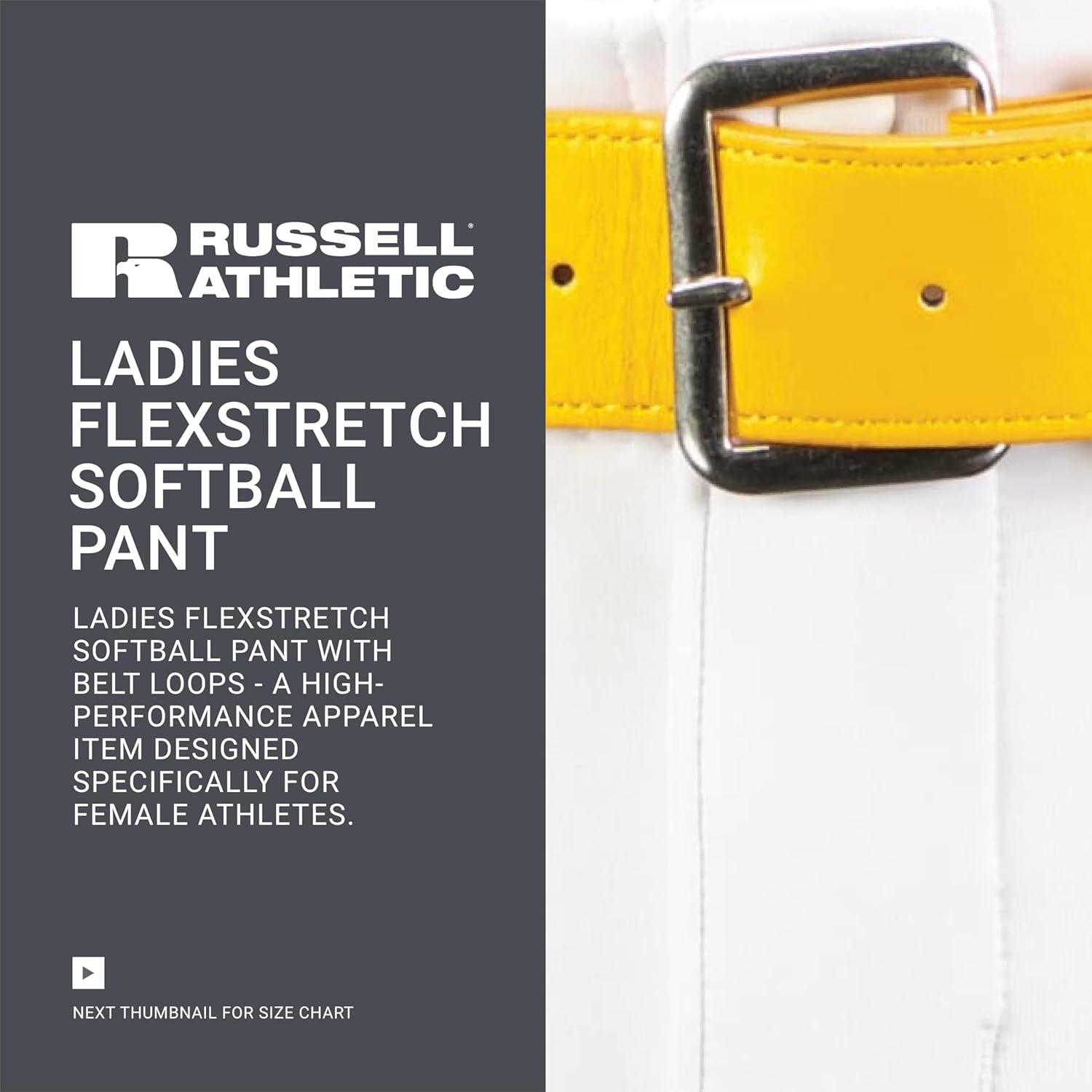 • Russell Athletic Women’s Flexstretch Softball Pants with Belt Loops-Fastpitch & Baseball Ready(White)