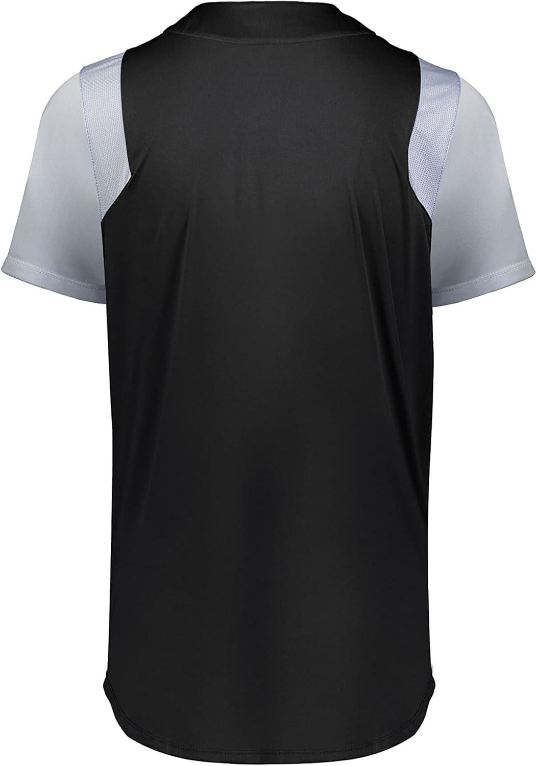 Russell Athletic Boy’s Youth Two-Button Placket Baseball Jersey Cool, Stay Dry with Mesh Inserts & Moisture Wicking(Black/Baseball Grey)