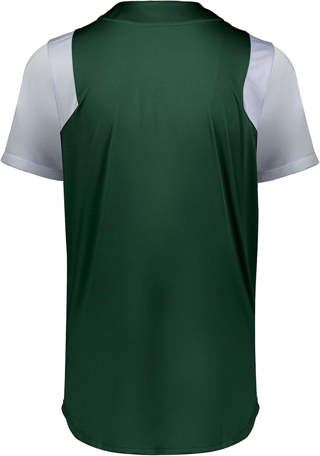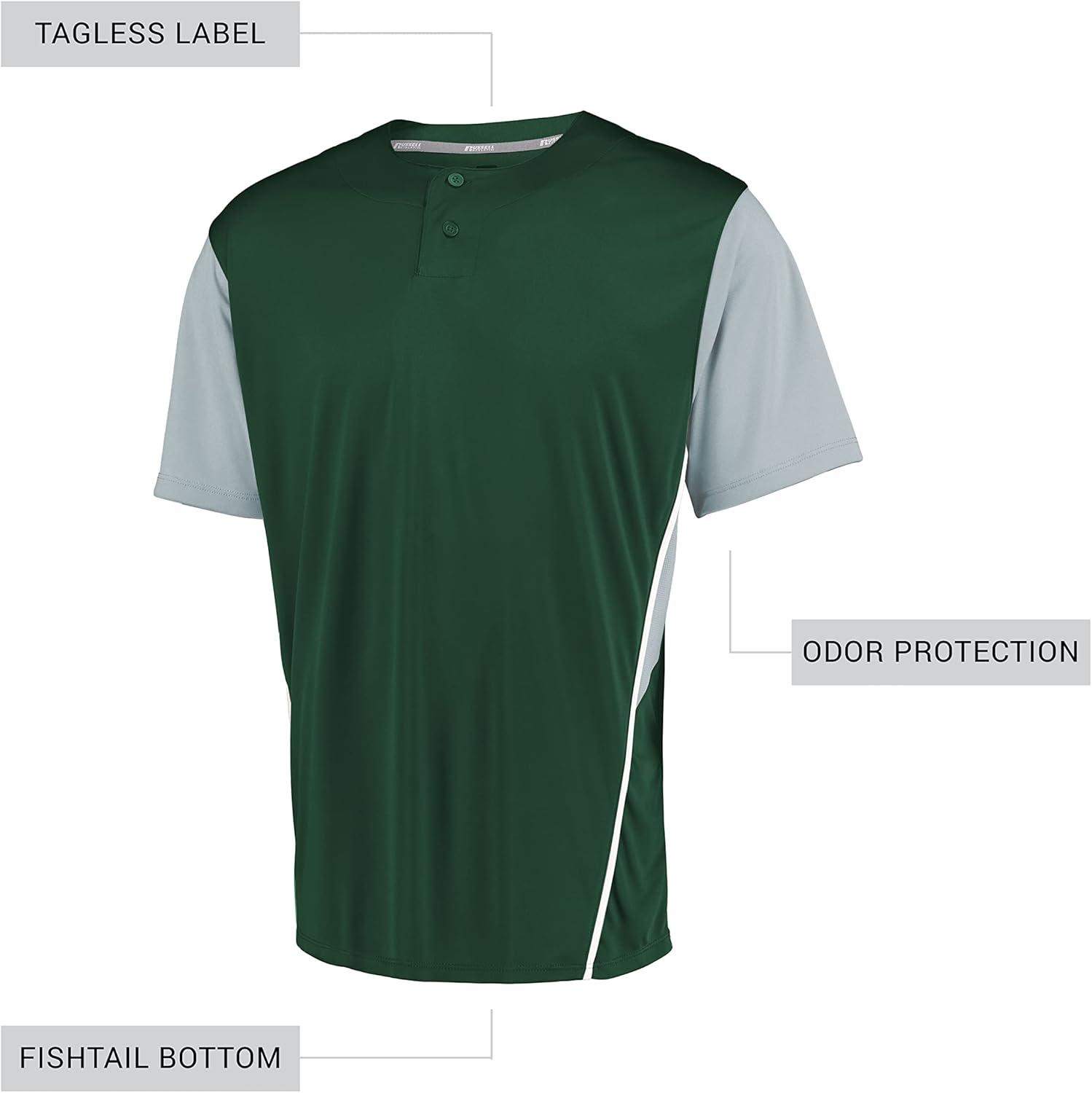Russell Athletic Boy’s Youth Two-Button Placket Baseball Jersey Cool, Stay Dry with Mesh Inserts & Moisture Wicking(Dark Green/Baseball Grey)