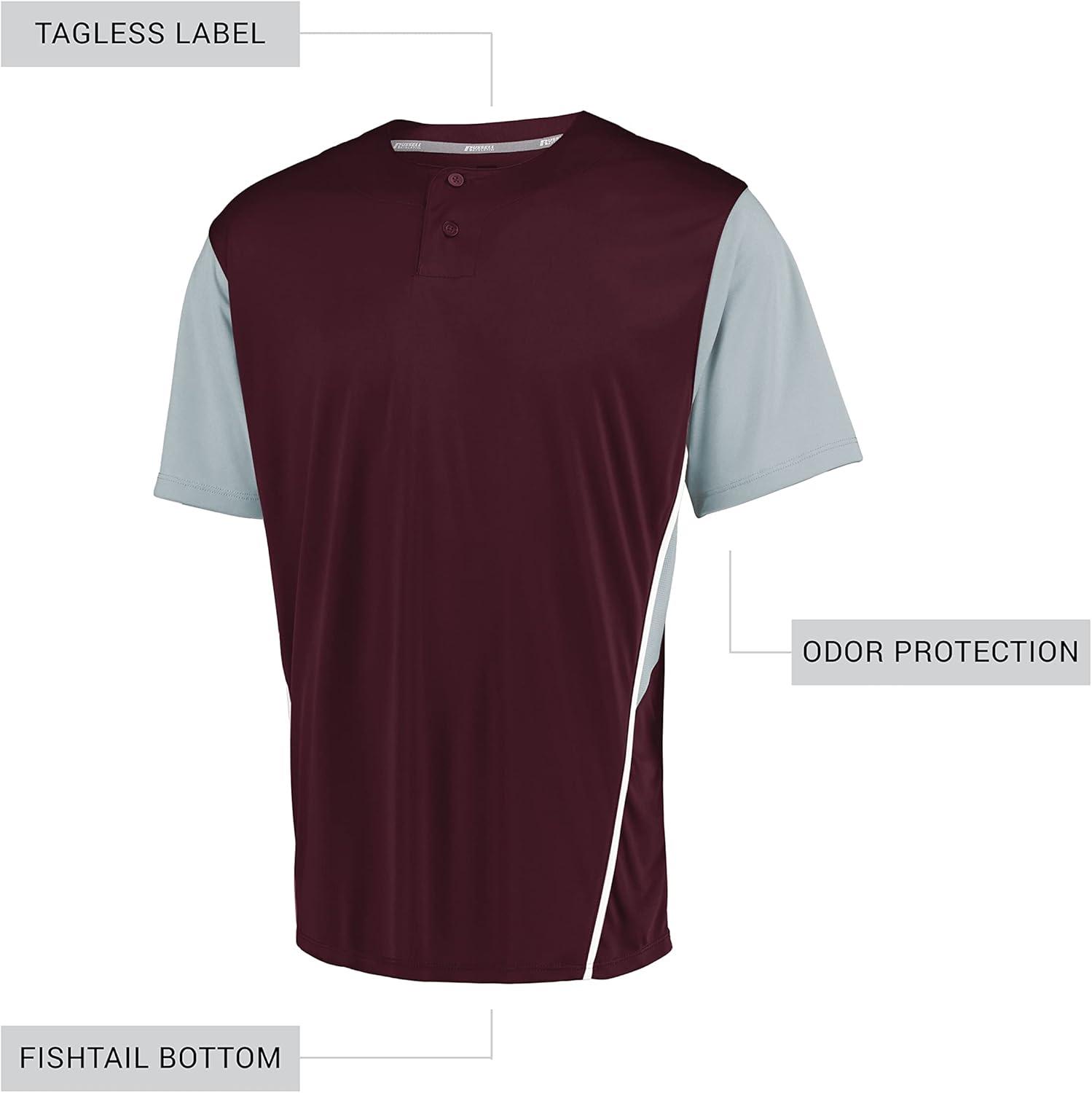 Russell Athletic Boy’s Youth Two-Button Placket Baseball Jersey Cool, Stay Dry with Mesh Inserts & Moisture Wicking(Maroon/Baseball Grey)