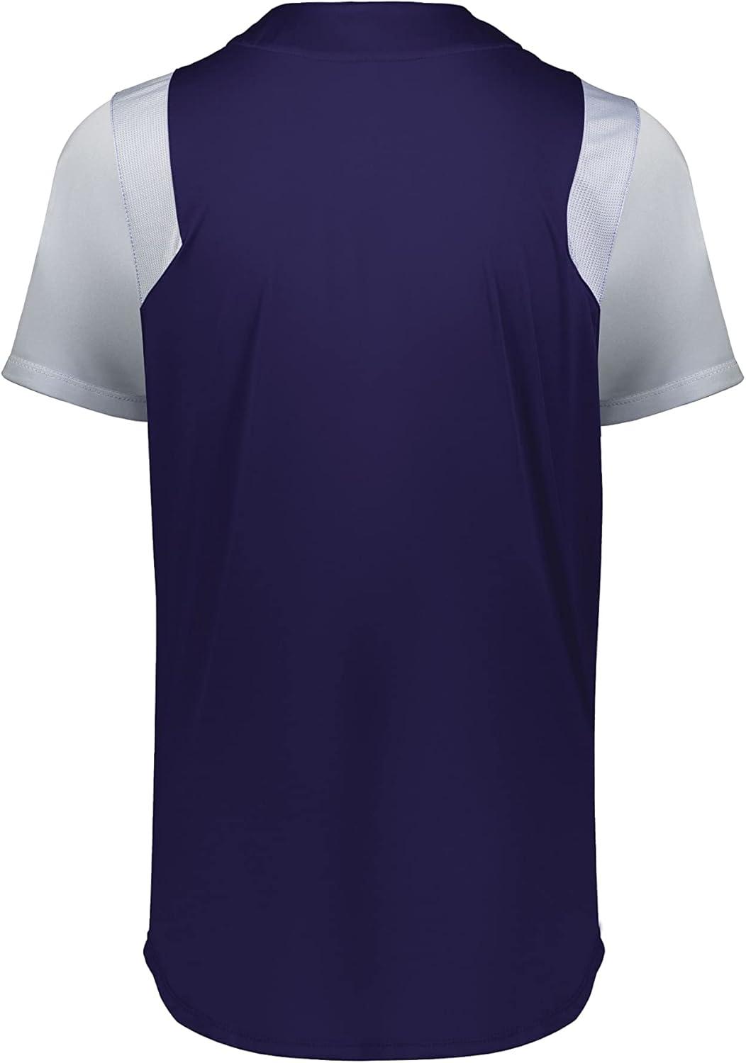 Russell Athletic Boy’s Youth Two-Button Placket Baseball Jersey Cool, Stay Dry with Mesh Inserts & Moisture Wicking(Purple/Baseball Grey)